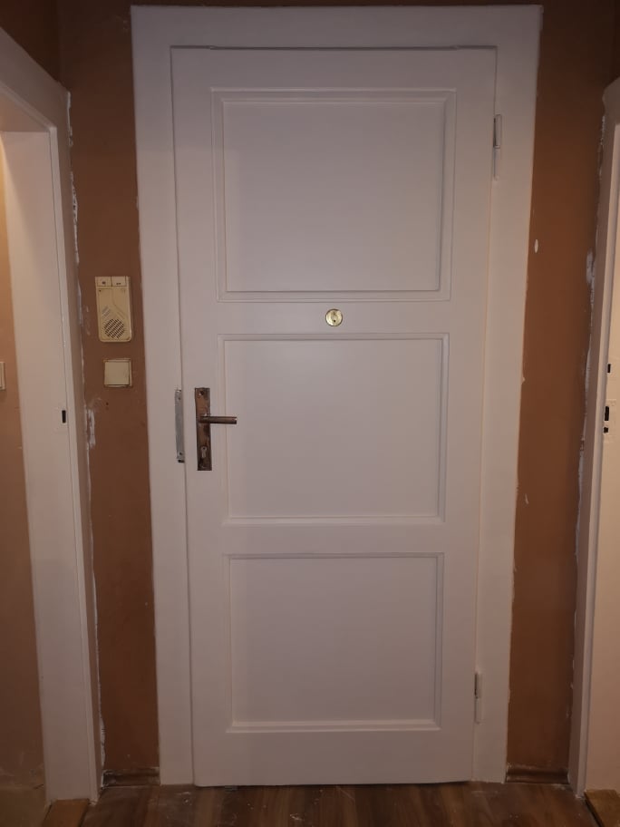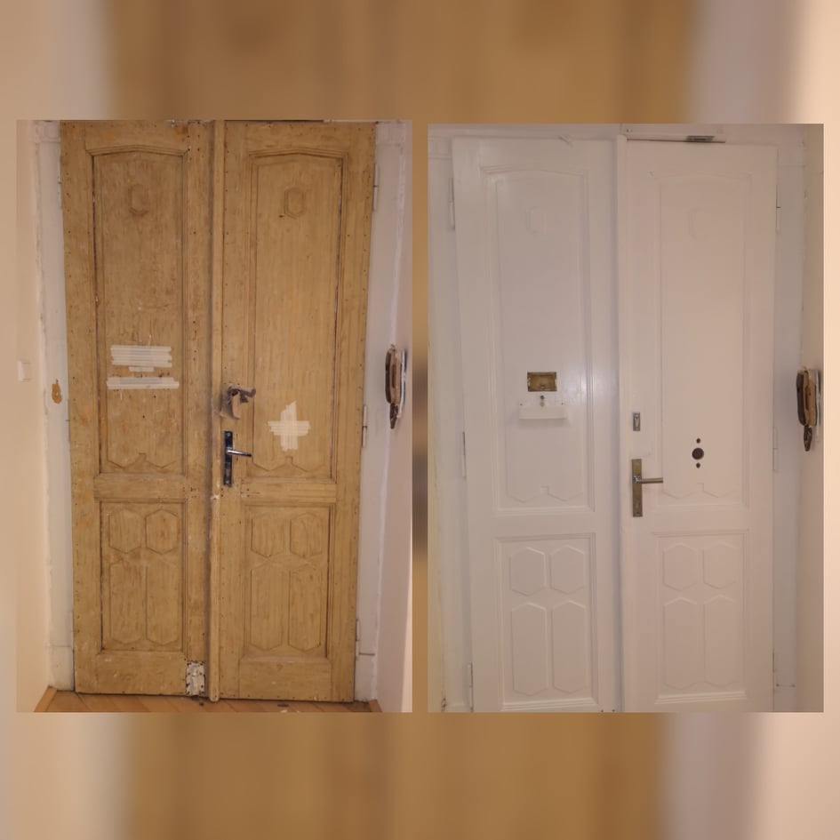 následně 2x finální nátěr. Nakonec se našroubují zámky a kování a vaše dveře jsou hotové a jako nové.