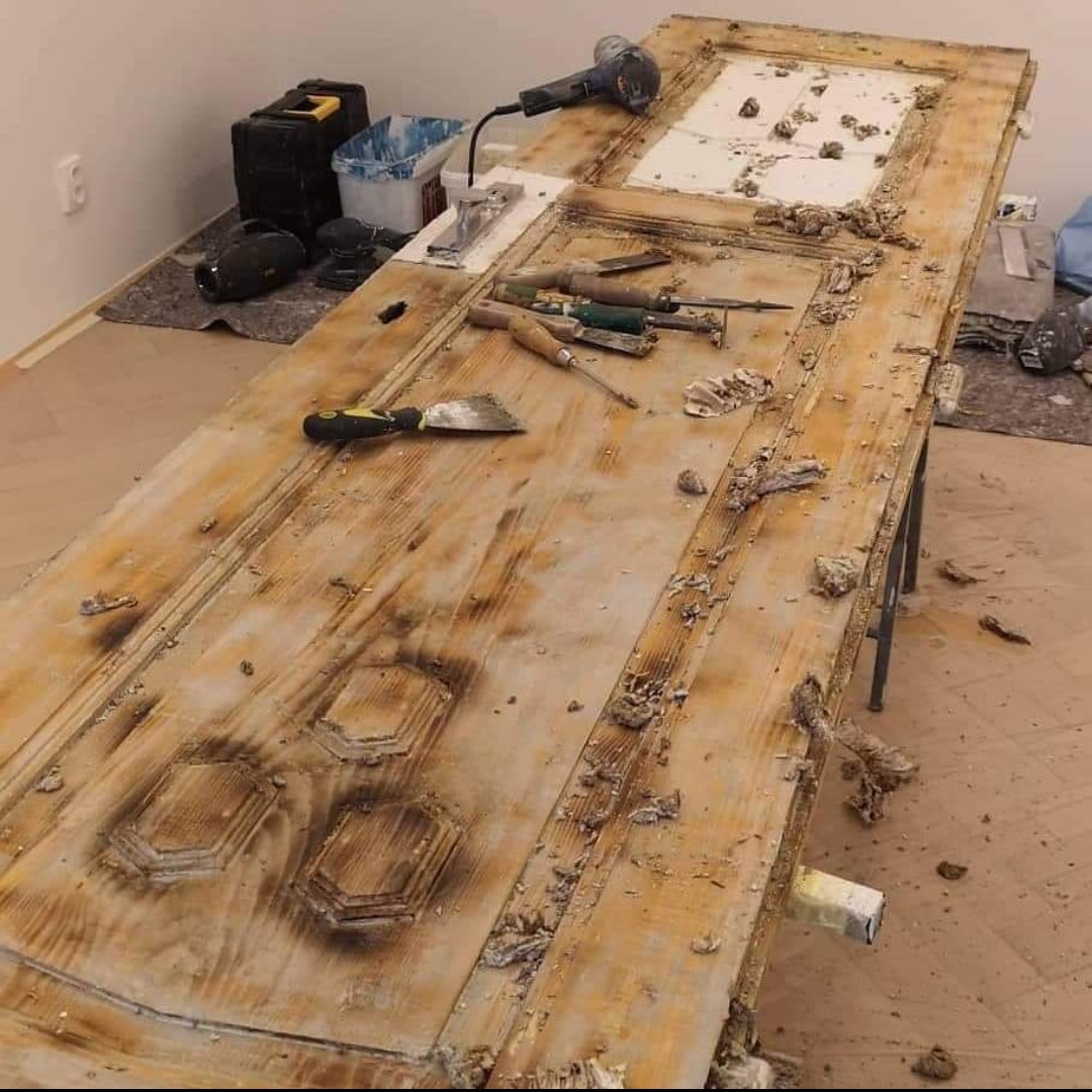 zbavit starých nátěrů, nejčastěji provádíme odstraňování horkovzdušnou pistolí, tzv. opálení.